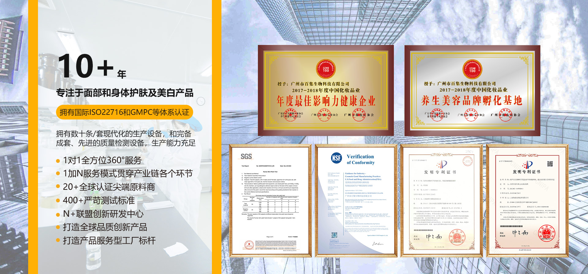 廣州市百集生物科技有限公司成立于2012年,坐落在亞洲化妝品硅谷的廣州市白云區(qū),是一家具有現(xiàn)代化管理、專業(yè)化水準(zhǔn)的化妝品研發(fā)及制造基地,為客戶提供專業(yè)的OEM/ODM一站式服務(wù),涵蓋產(chǎn)品規(guī)劃、配方開發(fā)、包裝設(shè)計、功效測試、乳化、灌裝、包裝、倉儲物流等全方位服務(wù)。產(chǎn)品涵蓋各類化妝品水、乳、霜、膏、面膜、精華、BB霜、CC霜、素顏霜、精油及粉類等成品及半成品,涵蓋日化線及專業(yè)線配方。公司秉承“創(chuàng)新、共贏”的核心價值觀......